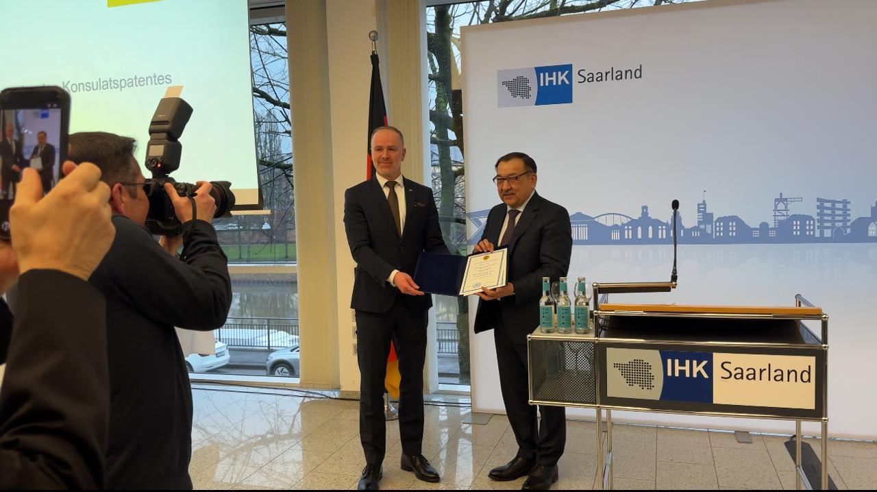 Ключевым моментом церемонии стало вручение консульского патента Почётному консулу Казахстана в городе Саарбрюккене Франку Томе. В своей речи он выразил благодарность за оказанное доверие и подтвердил готовность активно содействовать развитию торгово-экономического, культурного, гуманитарного и регионального сотрудничества между Казахстаном и регионом Саар.